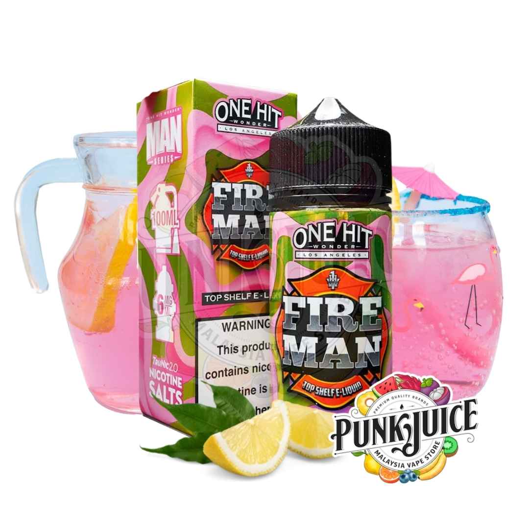 Fire Man by One Hit Wonder is a tribute to classic lemonade with a pinkish twist. Combining elements of tart and juicy lemonade that contrasts between being sweet and sour to tantalize your taste buds.